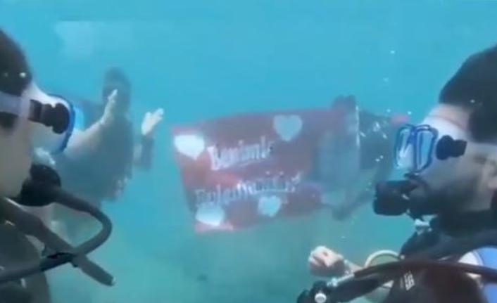 Denizin 21 metre altında evlenme teklifi! (Video haber)
